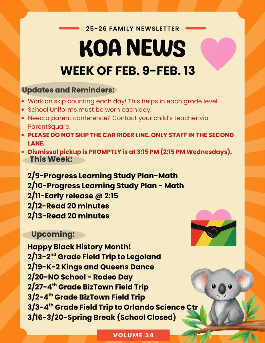 As we move forward, please know that our Koala community remains dedicated to fostering a safe, nurturing, and inclusive environment where every child can thrive. We look forward to a strong and successful 3rd nine weeks and are excited for all the learning and achievements still ahead.