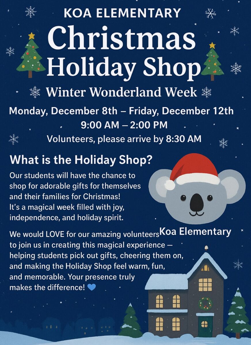 Welcome back to another exciting school year! At Koa Elementary School, we are thrilled to open our doors and hearts to our incredible students, dedicated staff, and supportive families. Whether you are returning or joining us for the first time, we are so glad you're here.